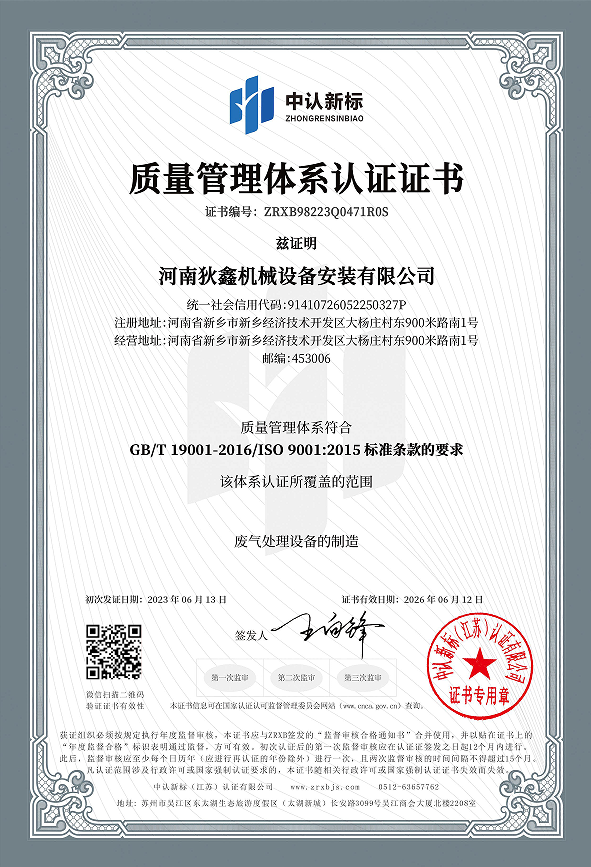 質(zhì)量管理體系認證證書(中)